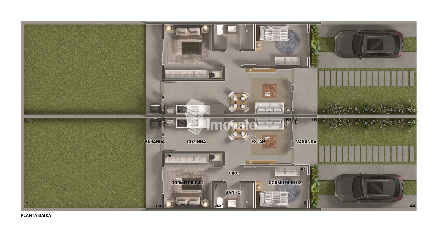 CASAS GEMINADAS FINANCIÁVEIS PELO PROGRAMA MCMV, COM 60,00 m² DE ÁREA CONSTRUÍDA,