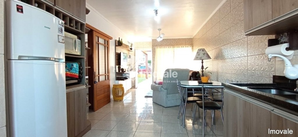 Descrição › - Casa geminado de 2 dormitórios 66,30 m², sala , cozinha , lavanderia , vaga de estacionamento com pergolado e gramado e tem um excelente espaço livre nos fundos com piscina !